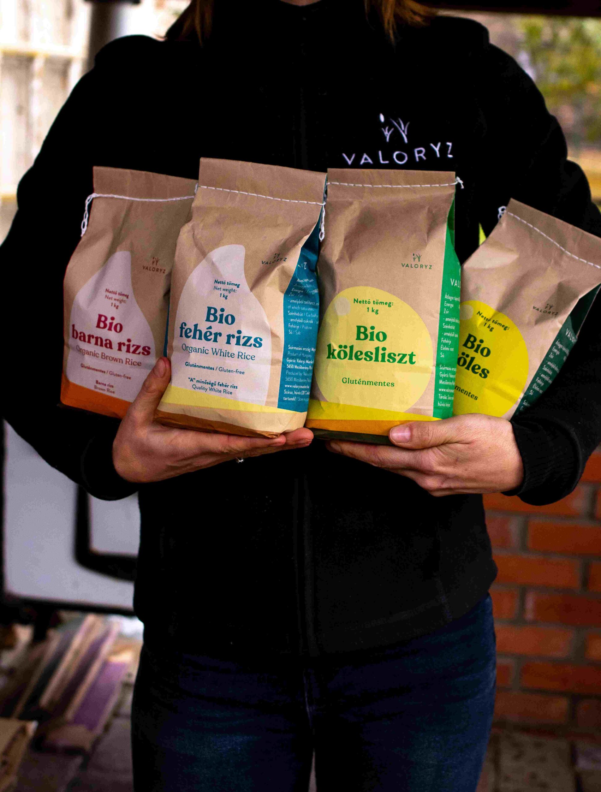A Valoryz bio csomag a következő termékeket tartalmazza: Bio “A” minőségű fehér rizs, Bio Barna rizs, Bio köles, Bio kölesliszt